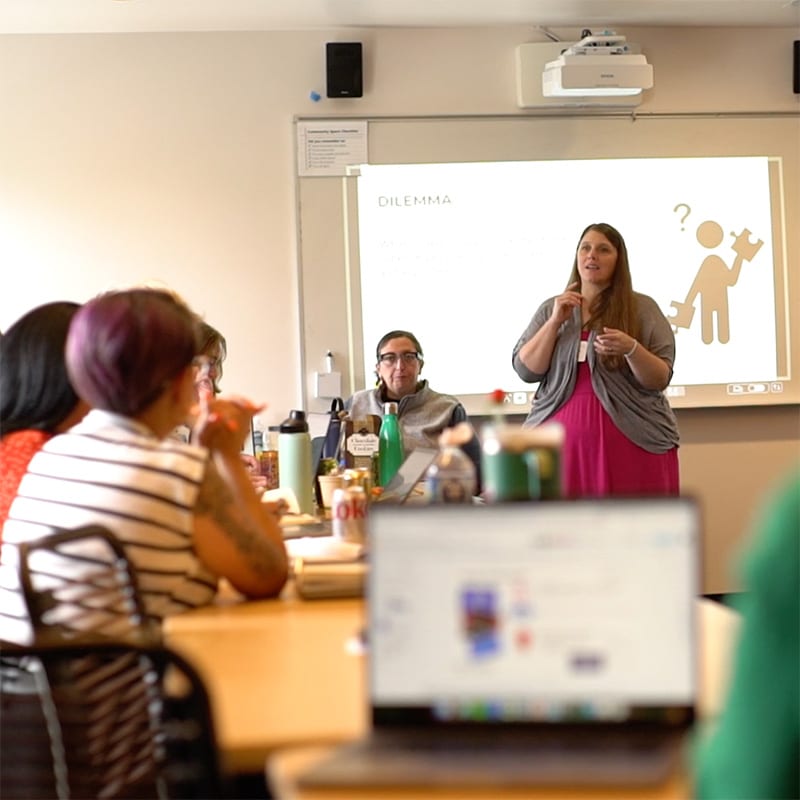 Often one student’s experience is so different from other student’s experience of the same thing that we want to make sure that students are getting a chance to hear from each other and share with each other. And so we lean a lot on discourse processes in the classroom to get kids to actually share the things they’re learning. And then discover from each other. So that when we’re moving on to the next step, it feels like a shared activity and a shared mission rather than individual students learning separately.